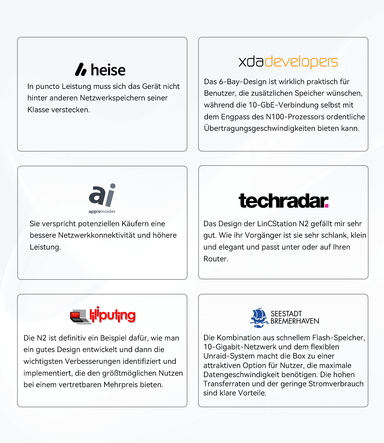 Die LincStation N2 bietet dank ihrer vielfältigen Bandbreiten-Konnektivitätsoptionen ein schnelles und flüssiges NAS-Erlebnis.
