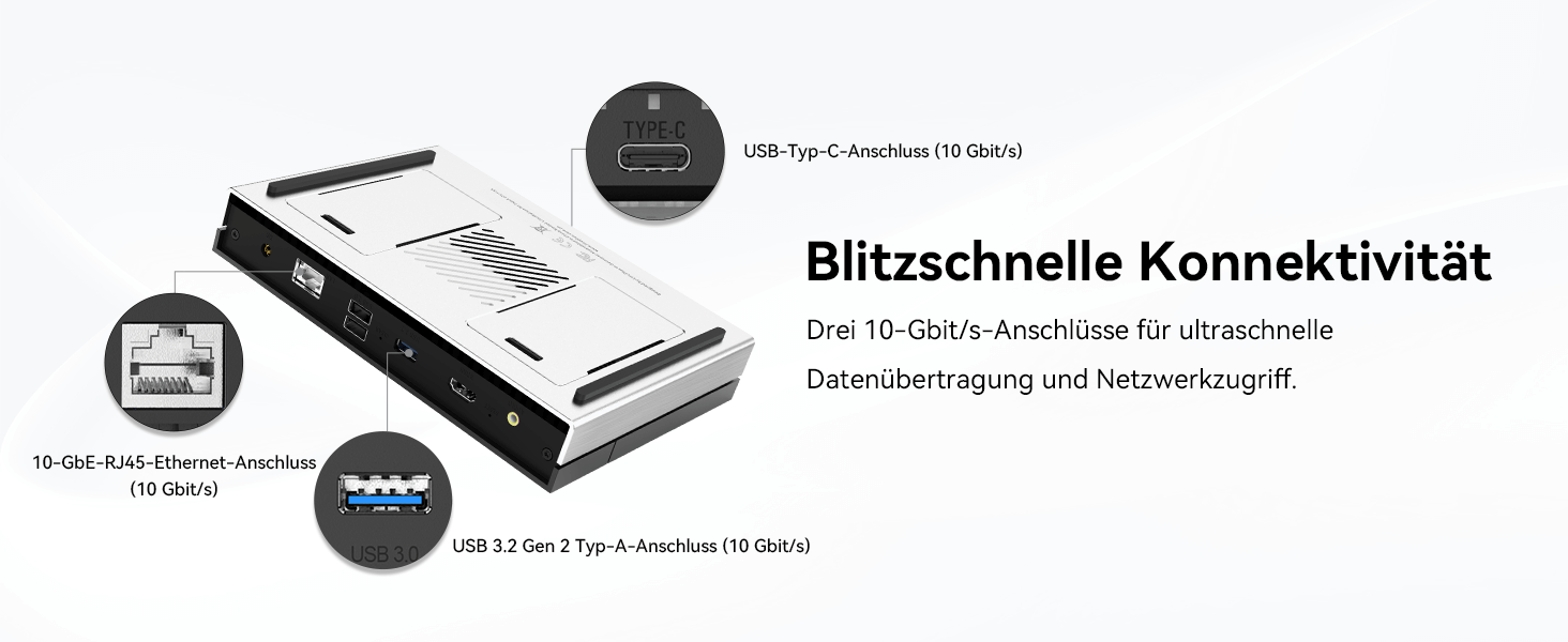 Ob Sie große Mediendateien übertragen, externe Speichergeräte anschließen oder remote auf Ihre Daten zugreifen – Sie profitieren